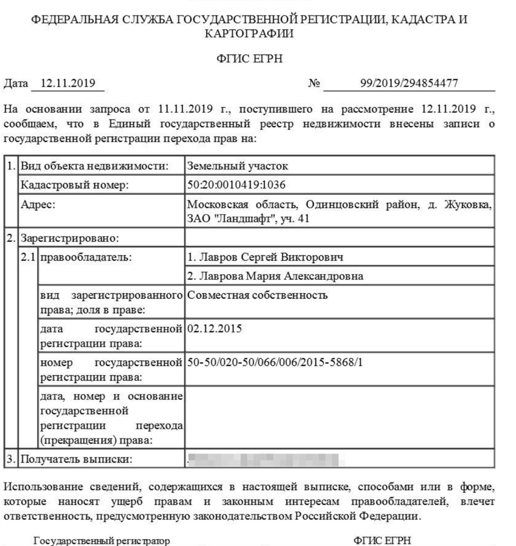 According to Rosreestr (Federal Registration Service), Lavrov's neighbor is Jahangir Makhmudov, the son of Iskander Makhmudov, a well-known oligarch with ties to the Izmailovo criminal group.
