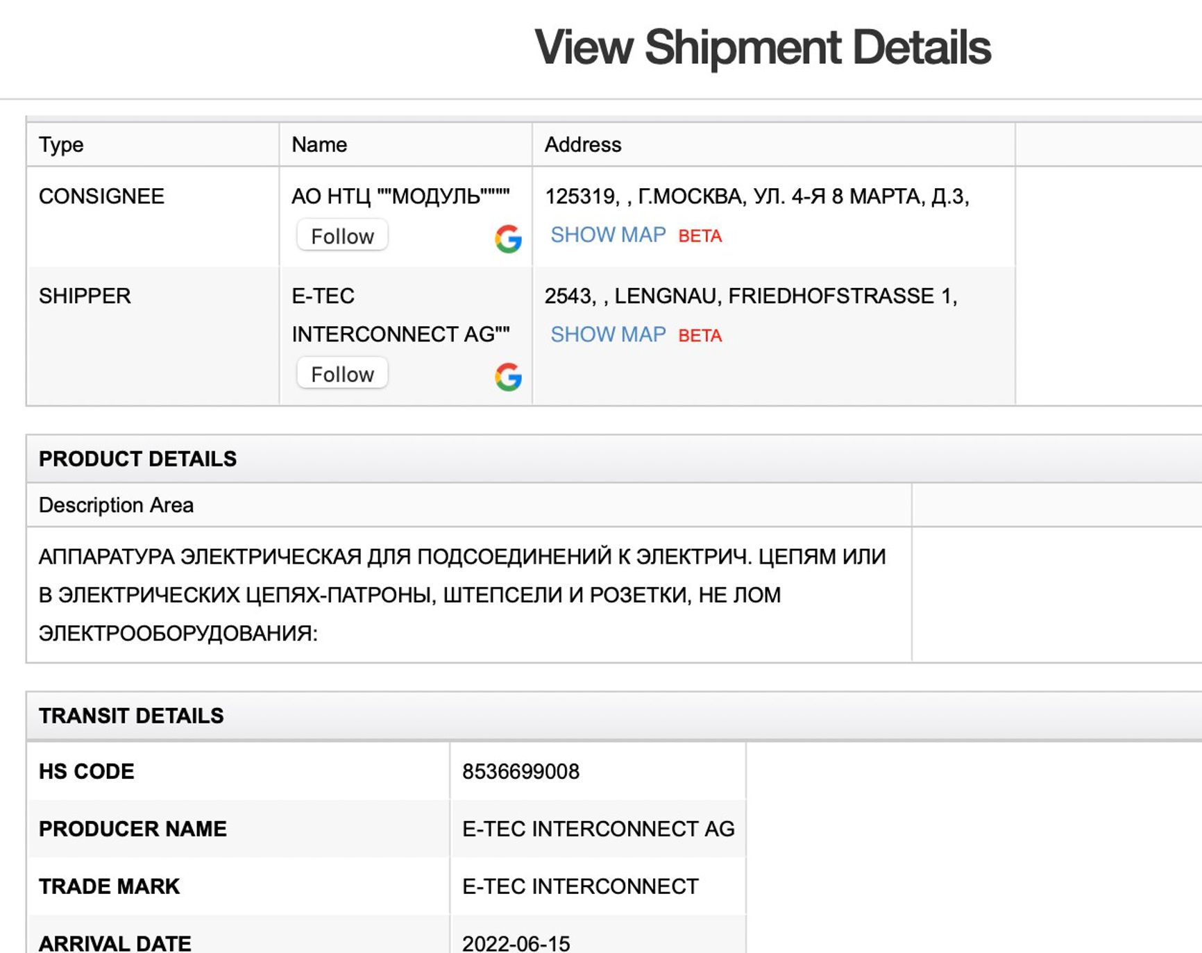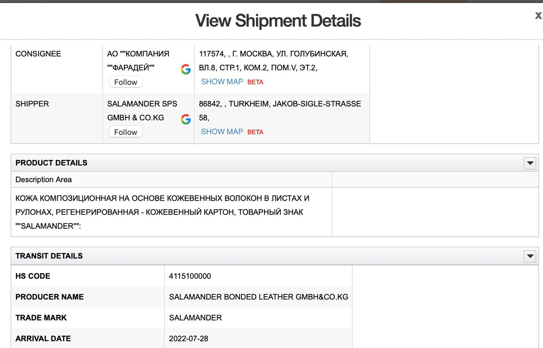 Moscow-based Stan LLC, a developer of modern numerically controlled machine tools, is part of the Rostec State Corporation. Despite Rostec being sanctioned, the German company Vansped Logistics (on behalf of Reißaus & Baumberg Maschinenbau GmbH) has already supplied Stan with technical equipment for foundries after the start of Russia’s invasion of Ukraine. According to the ImportGenius database, deliveries were made in July 2022.