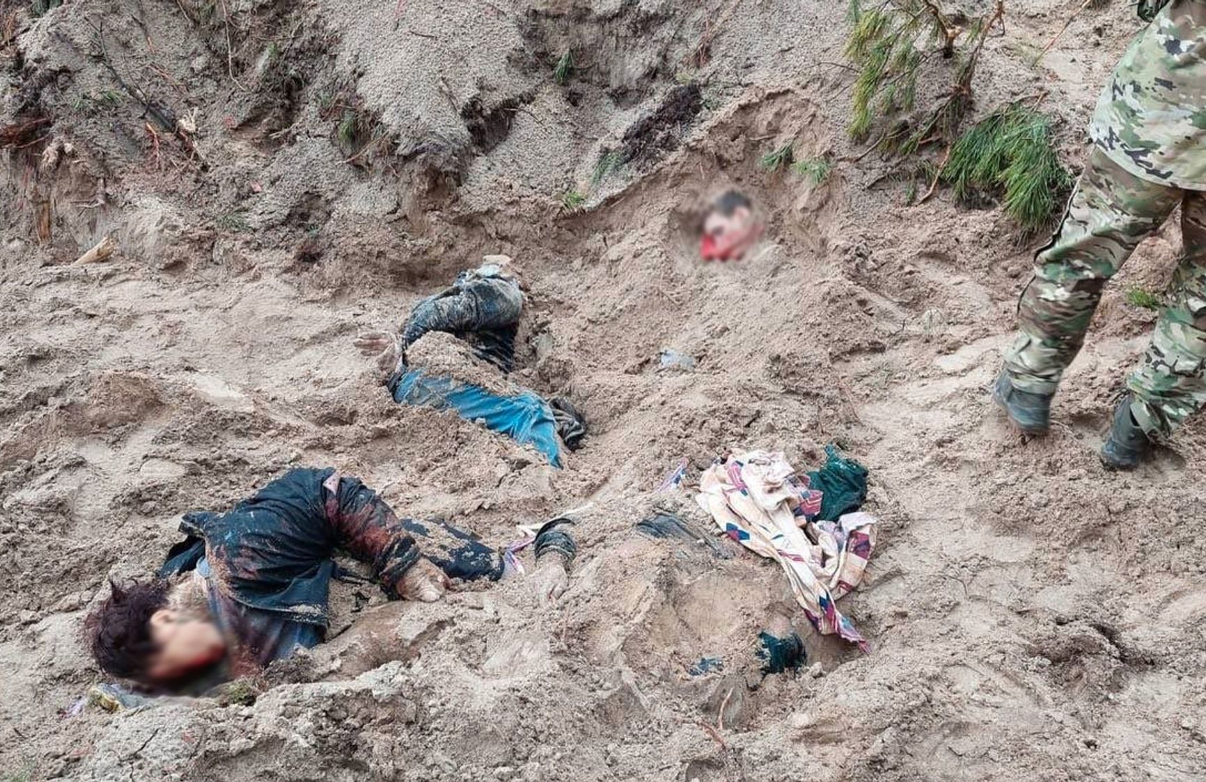 We were making our way pushing the stroller around the corpses. Suddenly we heard the shout: «freeze!»; we froze with our hands up, my daughter raised her hands too.