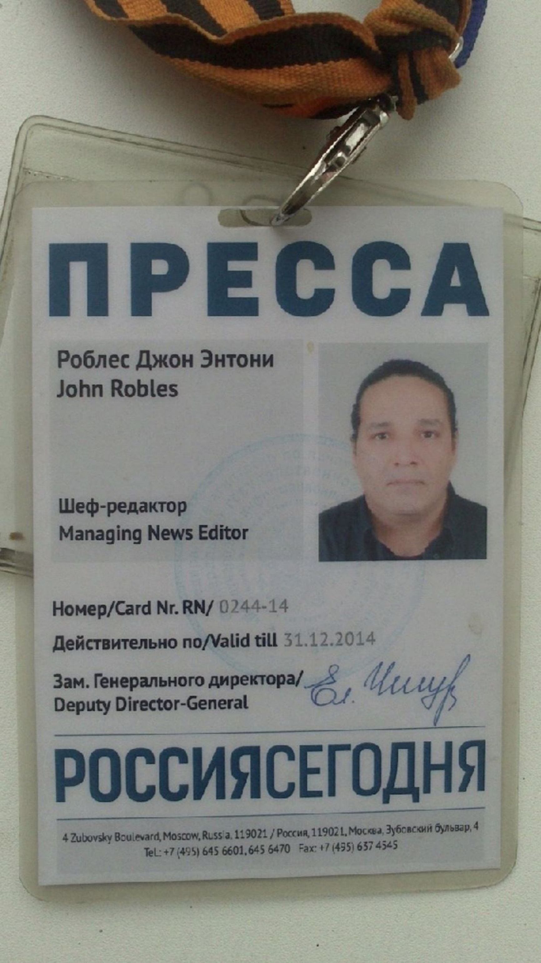 The Insider posed questions to Robles regarding his volunteer activities and his suspicions regarding the attempt to poison him in Kiselev's office, but he did not respond.