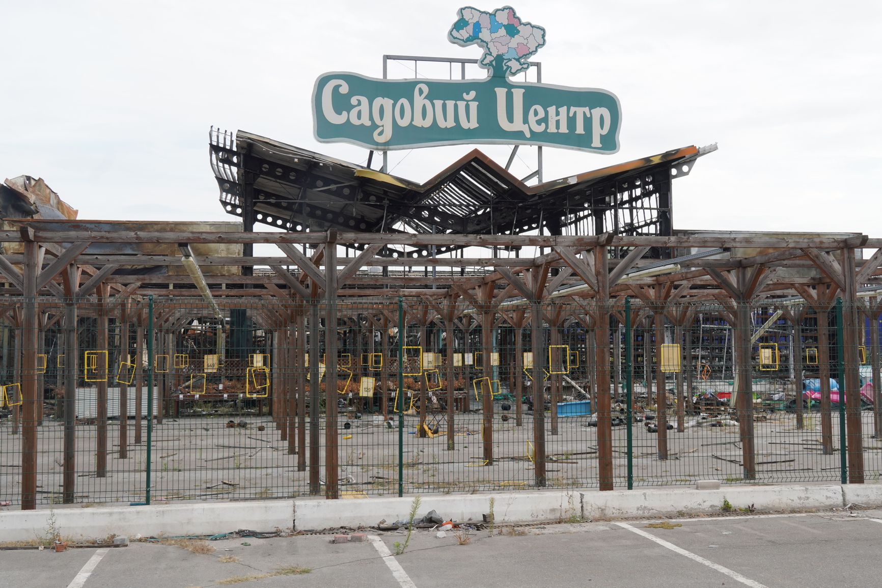 However, the “fog” is useless against missiles, and the charred ruins of the Epicenter clearly prove this fact. The facade of the hypermarket, although badly damaged, has yet to collapse, and the store sign, which now has Ukrainian flags hanging from it, survived. But the insides of the hypermarket are a chaos of charred metal structures, collapsed roof sheets, and heaps of goods smashed and scattered by the shockwave. Occasional price tags, faded under the merciless summer sun, are a surprising sight.