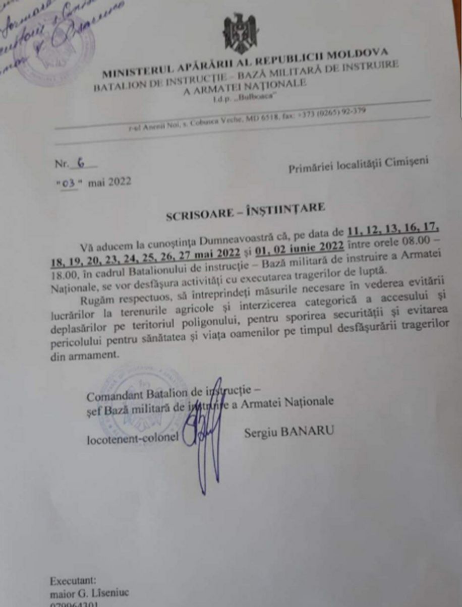 Есть единомышленники Горгана и среди чиновников на местах. Так, кто-то из них прислал документ, что на военном полигоне Бульбоака намечаются учебные стрельбы армии Молдовы. Разумеется, бумага тут же ушла в штаб-квартиру ГРУ.