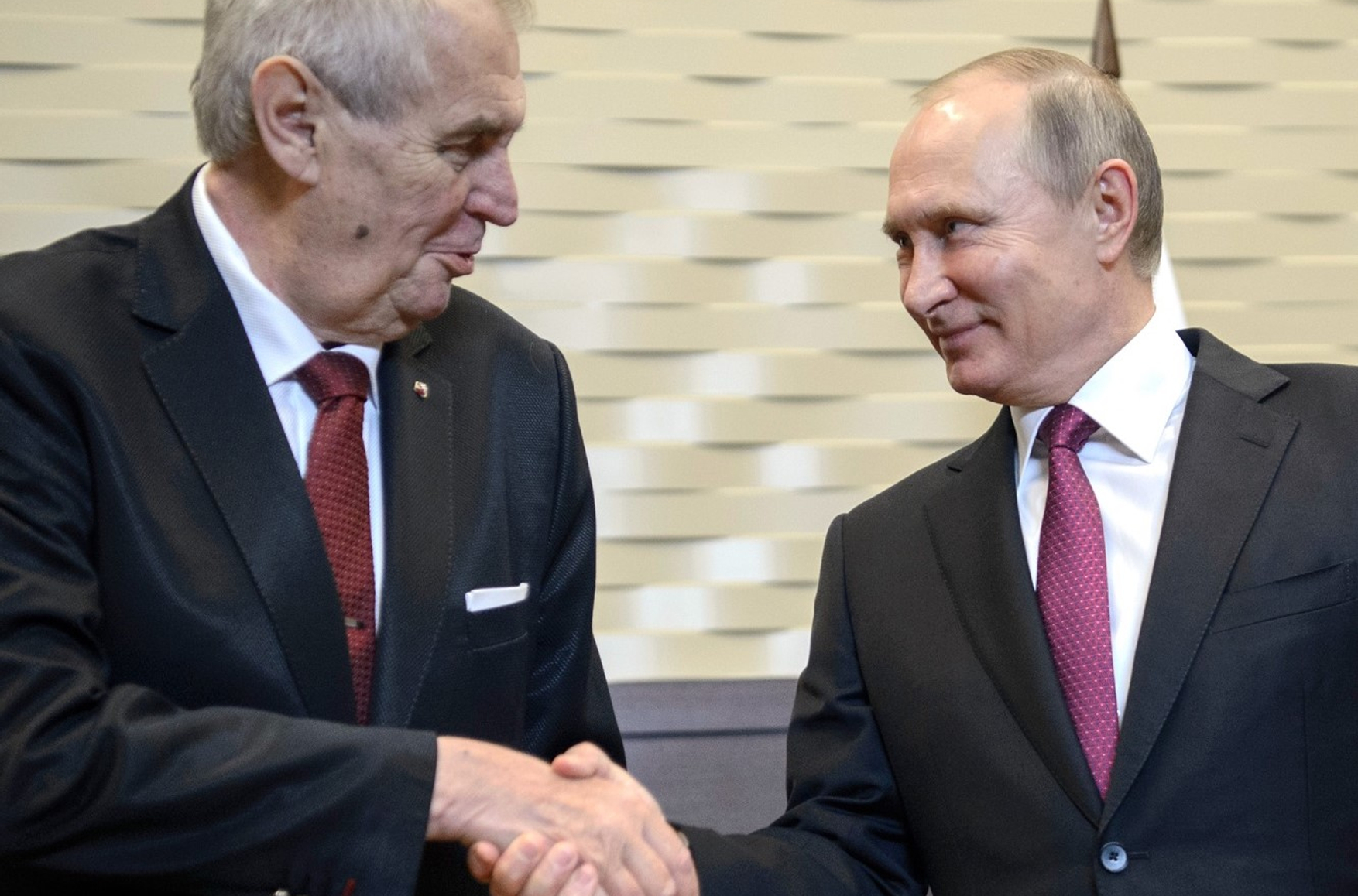 В конце прошлого года Милош Земан встретился с Владимиром Путиным в Сочи, где заявил, что «Украина не помнит своей истории», а Чехия в России нуждается больше, чем в ЕС. Ранее он не исключил возможности проведения референдума о выходе Чехии из ЕС и НАТО, а также назвал присоединение Крыма к России «свершившимся фактом» и посоветовал Украине подумать о «финансовой компенсации или же компенсации в форме поставок нефти или газа». Земан также неоднократно требовал отменить санкции Евросоюза против России (этот вопрос не находится в его компетенции, так как Чехия — парламентская республика).