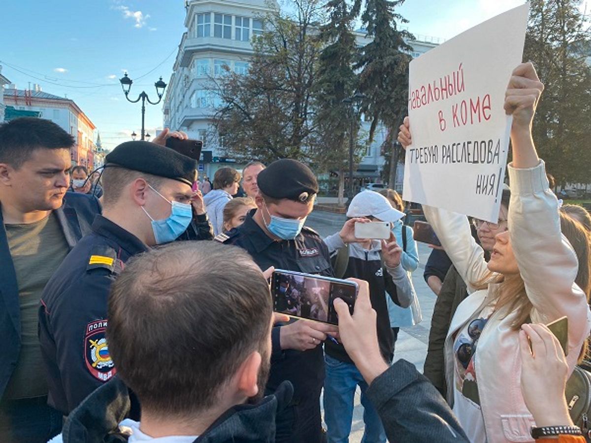 По всей России прошли акции в поддержку Алексея Навального, который с симптомами тяжелого токсического отравления впал в кому после госпитализации в Омске. Несколько десятков человек в разных городах выстроились в пикетные очереди с плакатами: «Навальный, живи!», «Навальный отравлен. Заказчик известен!», «Путин, хватит травить людей!». Протестующие также скандировали фамилию политика. Тех, кто ее выкрикивал, отправляли в автозак. Задержали несколько человек, в числе которых глава штаба Навального в Мурманске, — Виолетта Грудина.