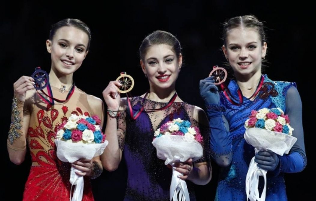 Олимпийской чемпионкой стала Анна Щербакова, на третьем месте - спортсменка из Японии Каори Сакамото.