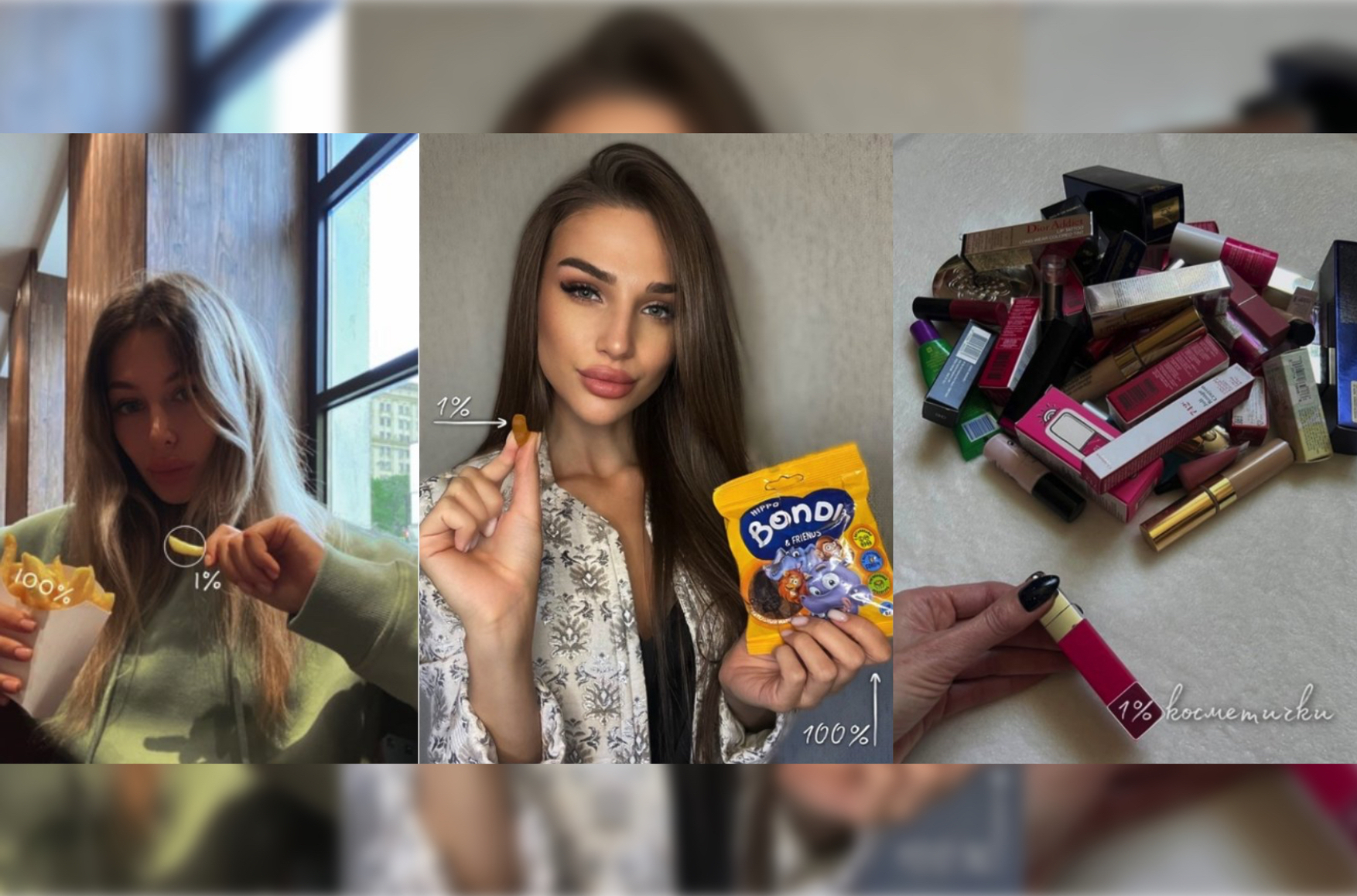 Российские провластные блогерши в соцсетях начали публиковать однотипные посты с хэштегом #безпаники. В них подписчикам объясняют, что 1% «общего ресурса», затронутый «частичной» мобилизацией (слова министра обороны Сергея Шойгу) — это совсем не много. К постам прикрепляют фото: блогерши показывают 1% от пачки мармелада или 1% от порции картошки фри. И утверждают при этом, что мобилизовать будут якобы только «опытных бойцов» — для «контроля» территорий.