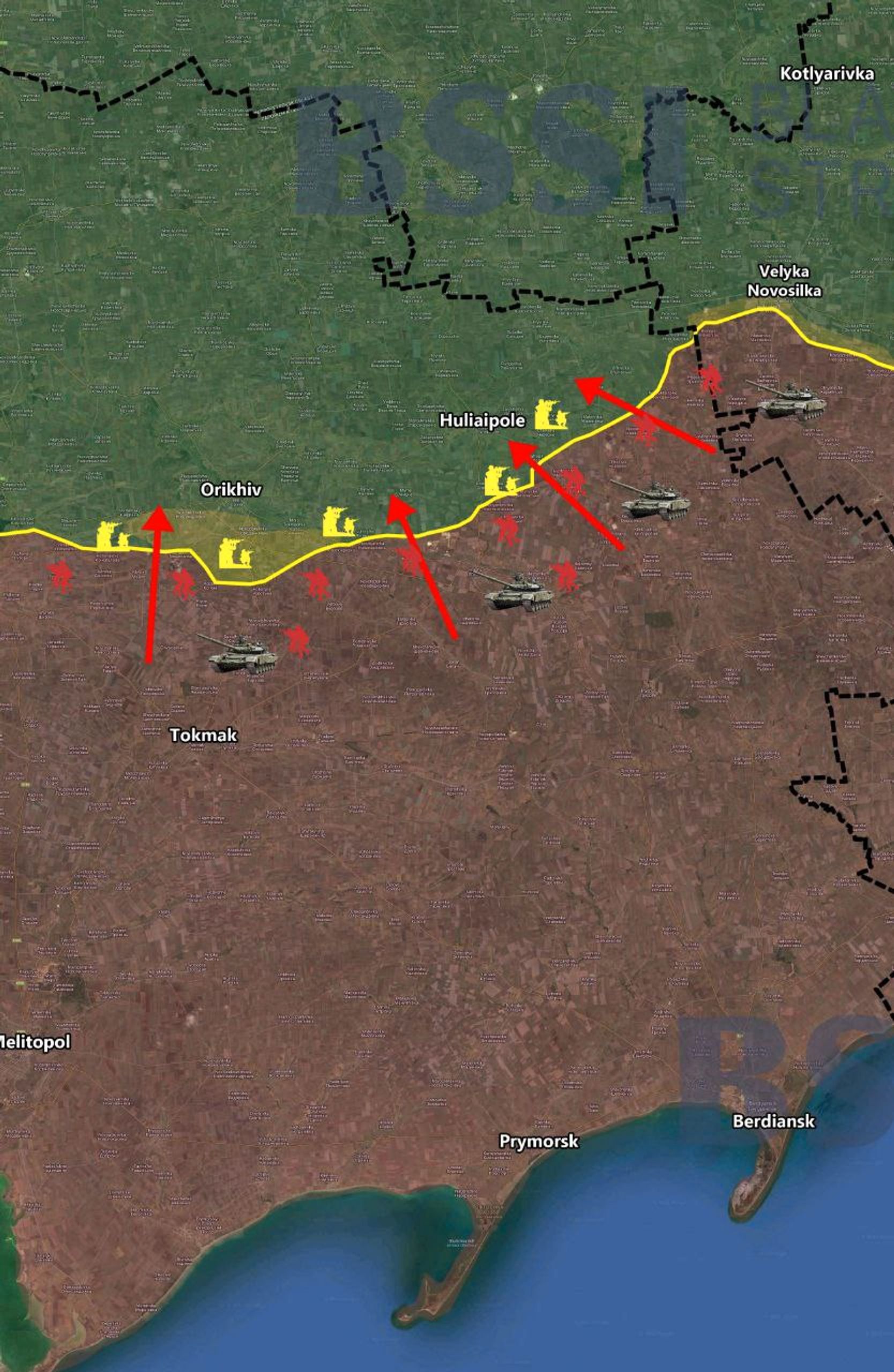 На Запорожском направлении, утверждает Генштаб ВСУ, по российским военным был нанесен удар в районе Токмака, около 180 человек были ранены, в городе работают мобильные крематории. Токмак стал местом, где россияне несут большие потери.