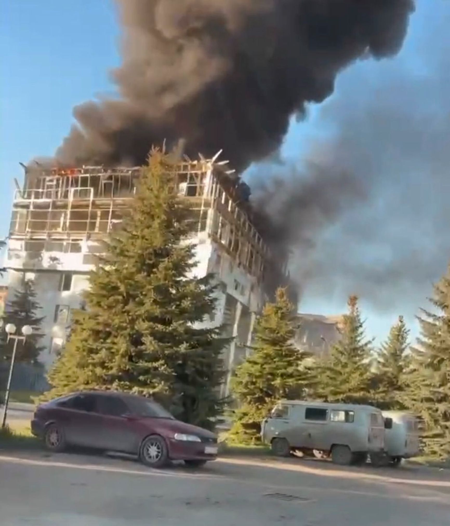 Во второй половине дня в Луганске прогремели взрывы. После этого российские каналы начали активно публиковать видео «серьезных пожаров». Сообщалось о пролете «чего-то, по звуку похожего на самолет», после чего раздался свист и звук взрыва. Российское пропагандистское издание Daily Storm писало о попадании в лакокрасочный завод «Поли-пак». Однако его здание находится через дорогу от того, которое было поражено. В целом очевидцы отмечали густой черный дым, из-за чего первоначально возникли предположения о поражении склада горюче-смазочных материалов.