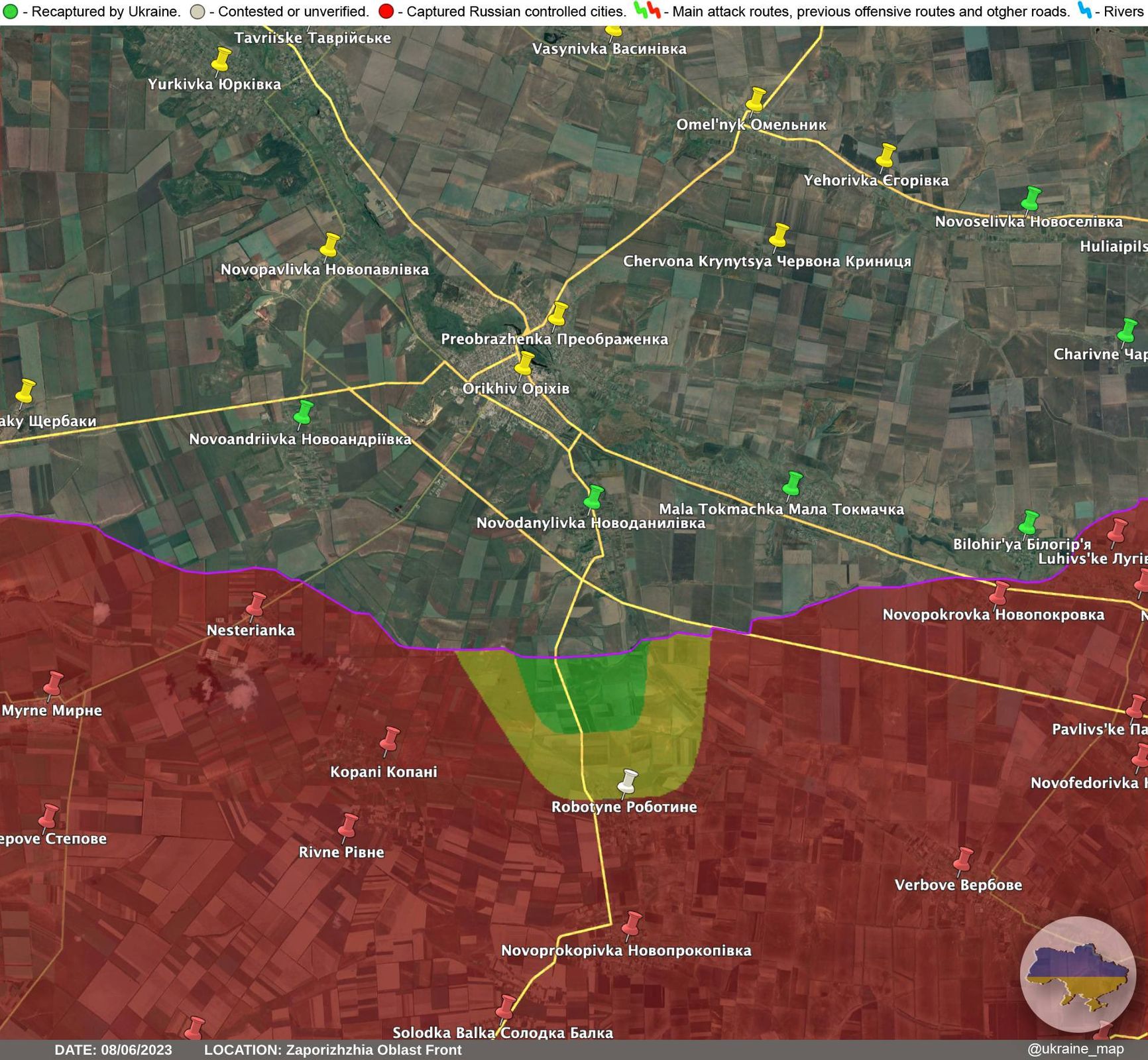 «Ночью на наши позиции было сильнейшее давление со стороны противника на Ореховском направлении. Враг накатывал волнами. Как минимум две атаки были отбиты нашими военными. Невиданное до этого. <...> Врагу удалось занять несколько высот, но в целом глубокого прорыва за эту ночь не получилось. Очевидцы пишут оттуда, что противник бросает в бой подразделение за подразделением. Много техники. Наша авиация работает в карусель. Много уничтожили. Идет настоящая жатва», — сообщает Z-канал «Zаписки Vетерана». Пропагандисты пишут, что таким образом ВСУ пытаются отрезать сухопутный коридор в Крым.