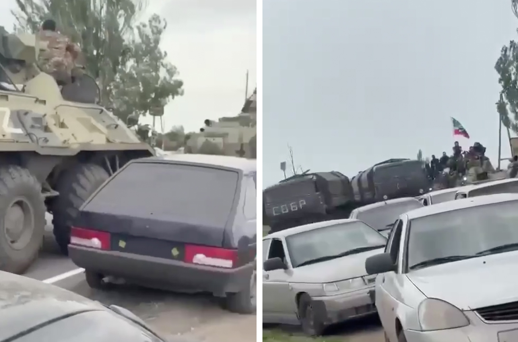 В сети появились кадры с чеченским «Ахматом» на въезде в Ростов. Судя по дорожному знаку, до города осталось около 87 км.