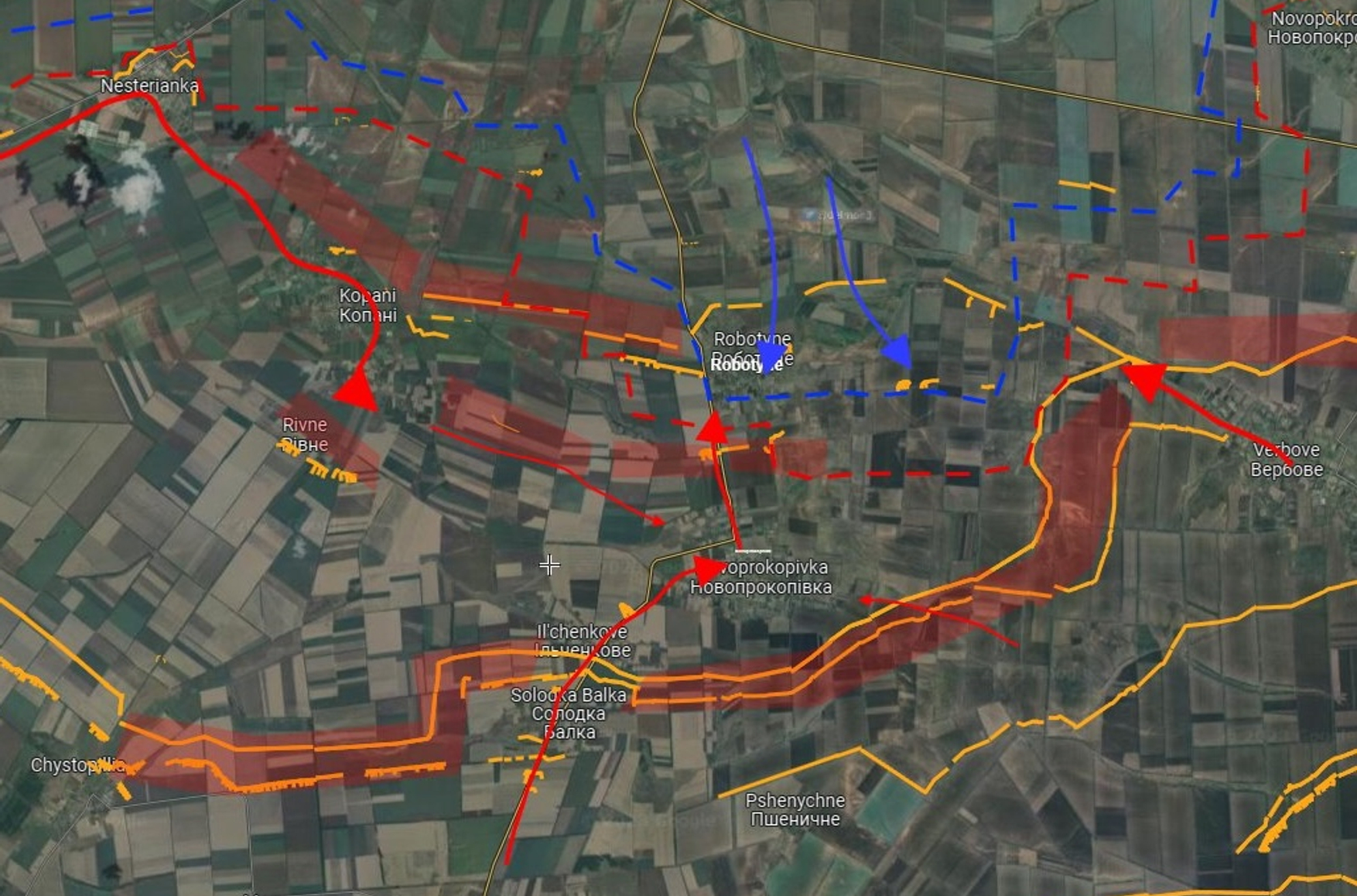 WarGonzo пишет, что украинские войска закрепились в северной части Работино и продвинулись в районе соседнего села Вербовое. Представитель Генштаба ВСУ Андрей Ковалёв также говорит об успехах по направлению к Работино.