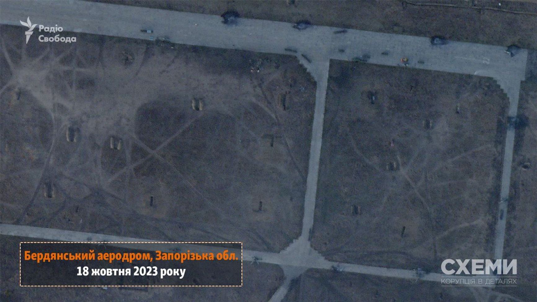 Позднее появились более четкие спутниковые снимки аэродрома Бердянска, на которых можно видеть 5–7 мест со следами горения там, где раньше размещались военные вертолеты.