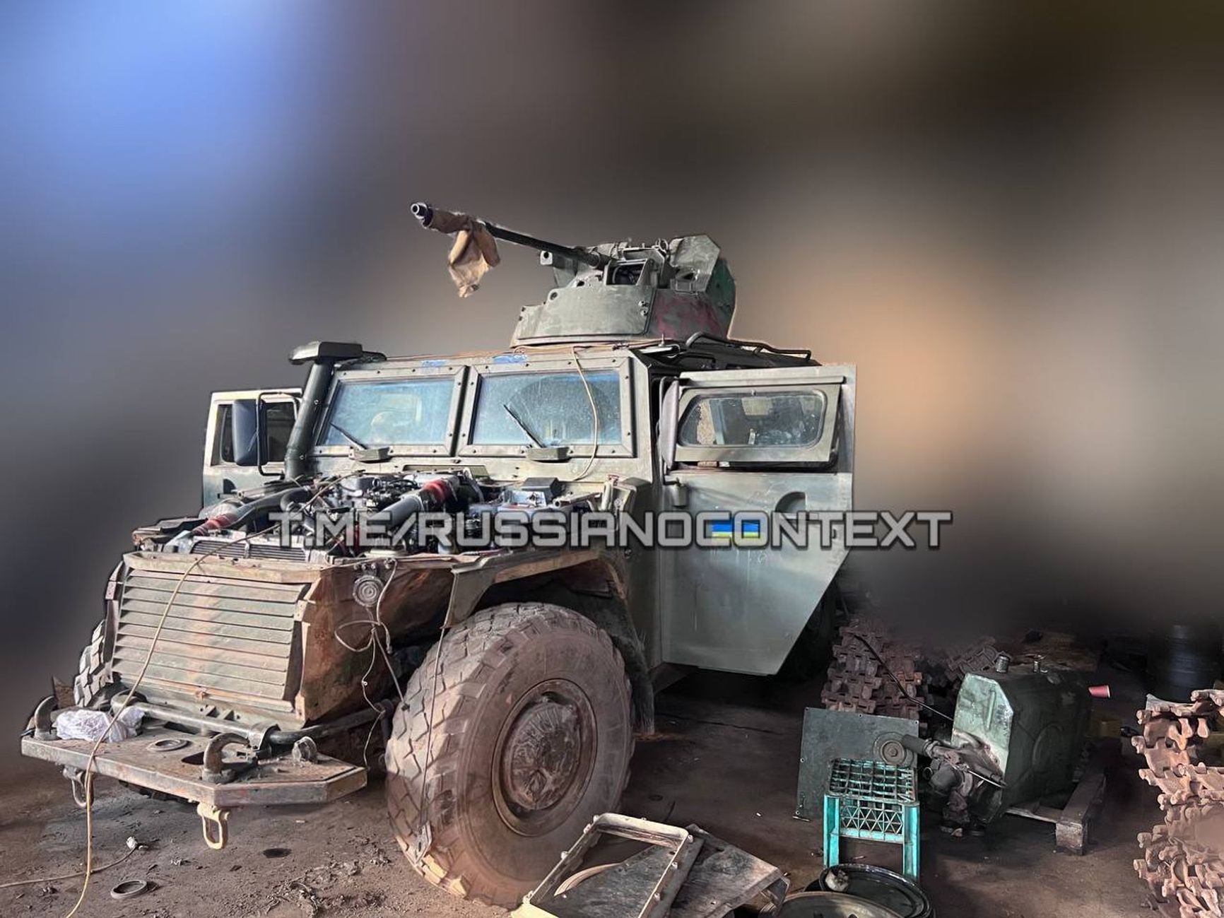 Украинские военные оборудовали трофейный российский бронеавтомобиль «Тигр» пушкой 2А72, которую сняли, опять же, с трофейного российского БТР-82А.