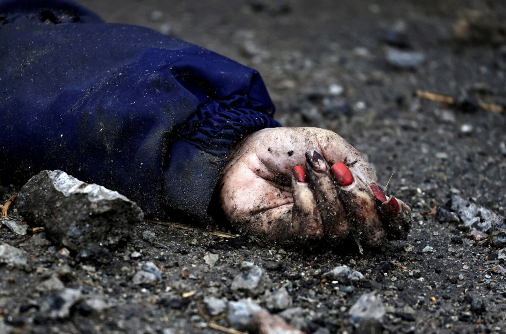 В тот день российские военные убили местную жительницу Ирину Филькину. Фотография ее руки с ярко-красным маникюром стала «одним из символов российских зверств во время оккупации Киевщины», отмечают местные власти. В женщину выстрелили не менее 15 раз.