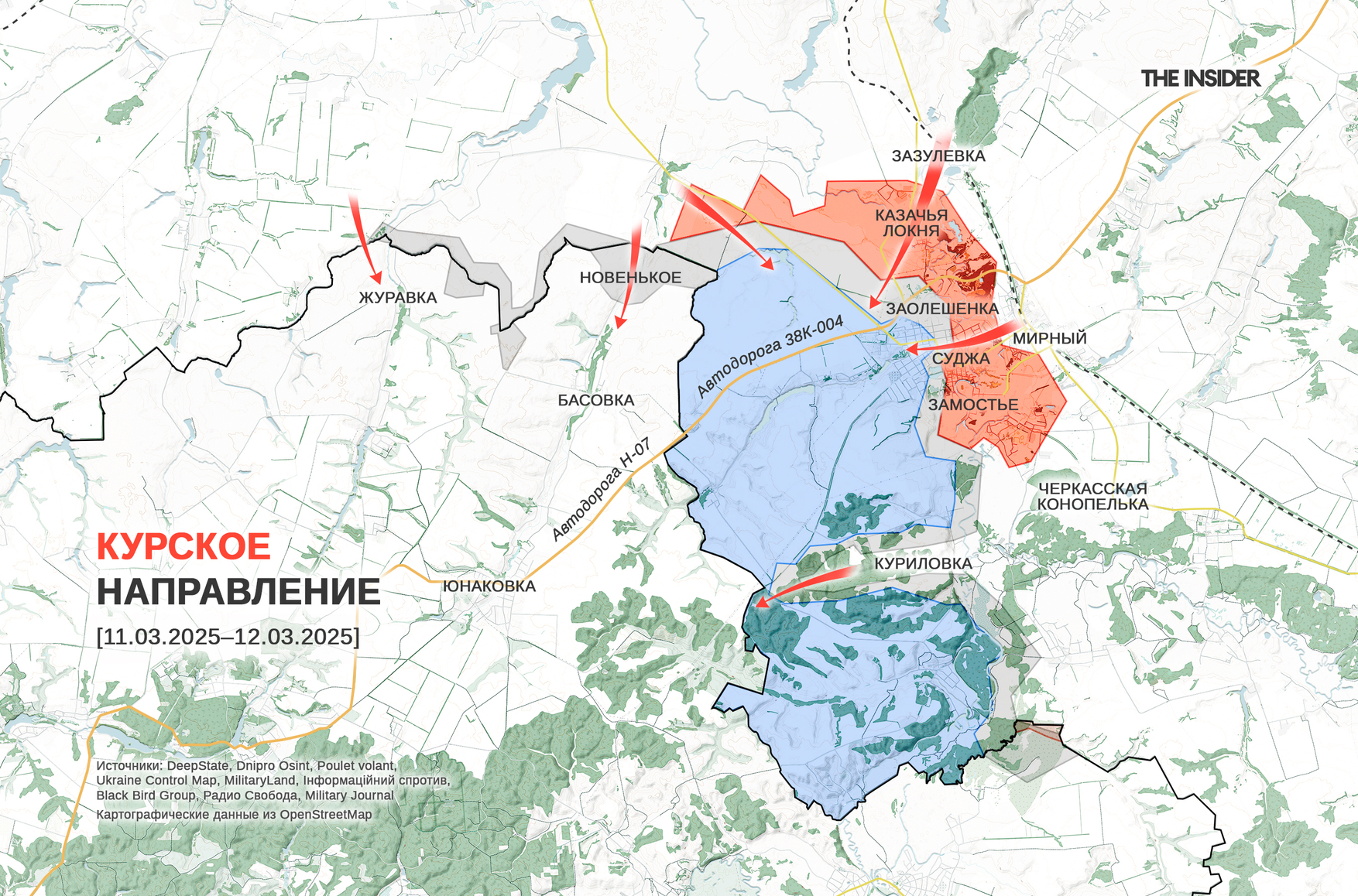 Минобороны РФ пока что отчиталось об освобождении населенных пунктов на подступах к Судже: Казачьей Локни, 1-го Княжего, 2-го Княжего, Замостья и Мирного.