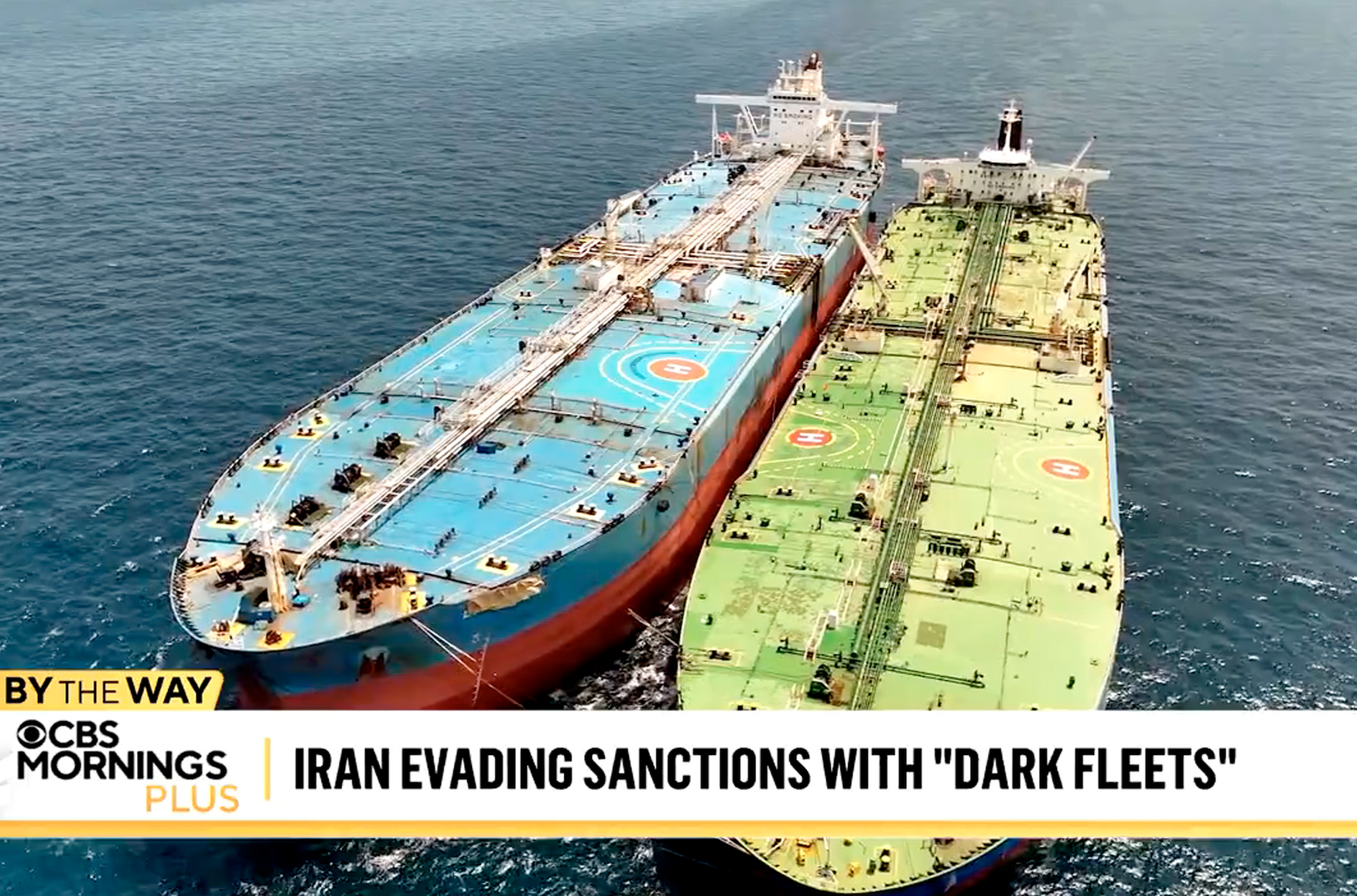 Съемочная группа CBS News решила проследить за танкерами, чтобы доказать перевалку, сняв ее на камеры. Их сопровождал бывший офицер ВМС США и старший советник организации United Against Nuclear Iran Чарли Браун. Они отправились в море из Сингапура, одного из самых загруженных портов мира, следуя за танкерами, которые вызывали подозрения. Журналисты выяснили, что в основном перевалка происходит недалеко от Малайзии — в водах архипелага Риау. Маршрут нелегальной перевозки всегда один: танкеры, загруженные нефтью в Персидском заливе, проходят через Малаккский пролив и достигают архипелага Риау. Здесь нефть перегружается на суда, следующие в Китай, который закупает до 90% всей иранской нефти.