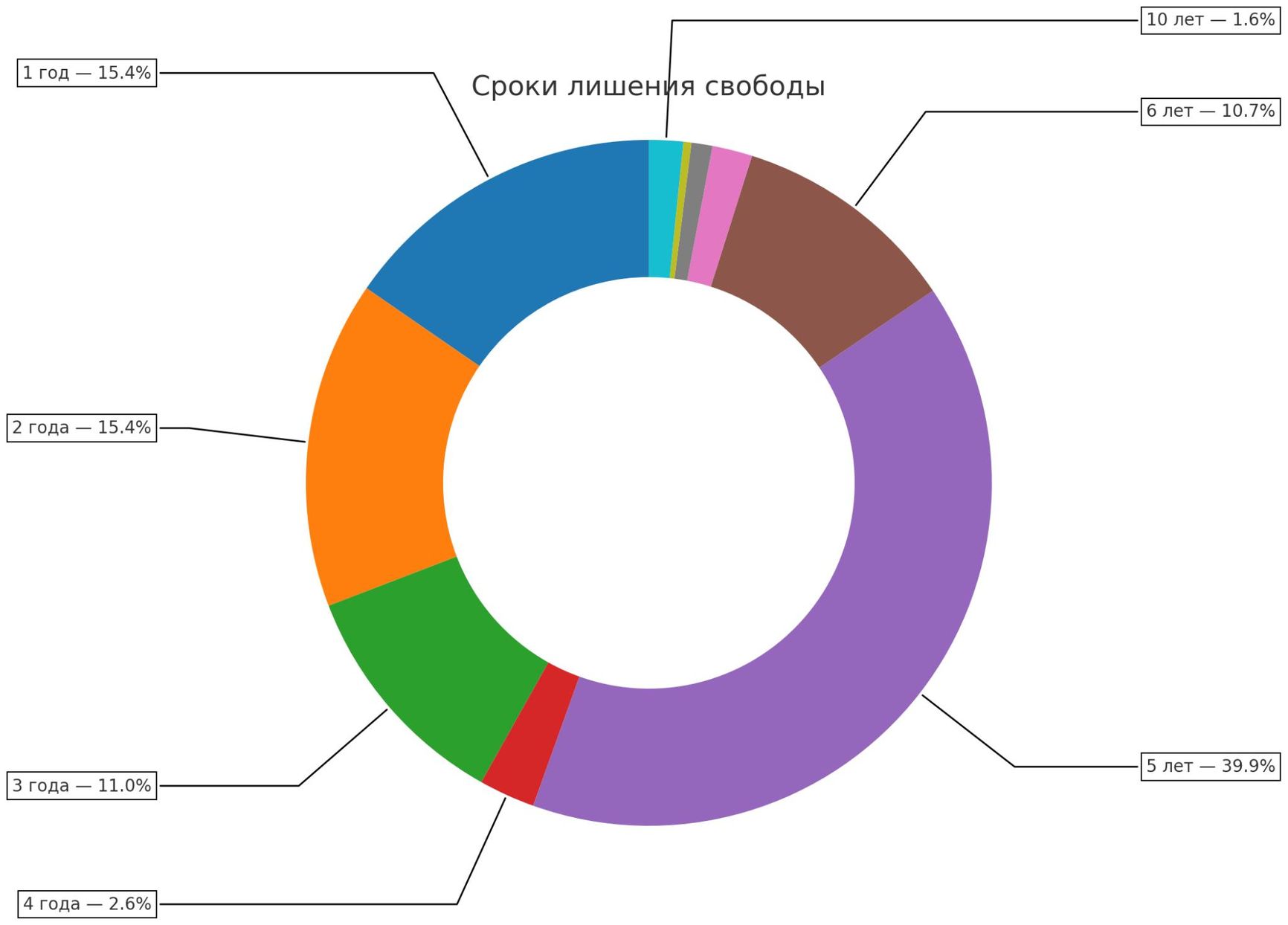 - средний срок наказания, связанного с лишением свободы, — 4 года;