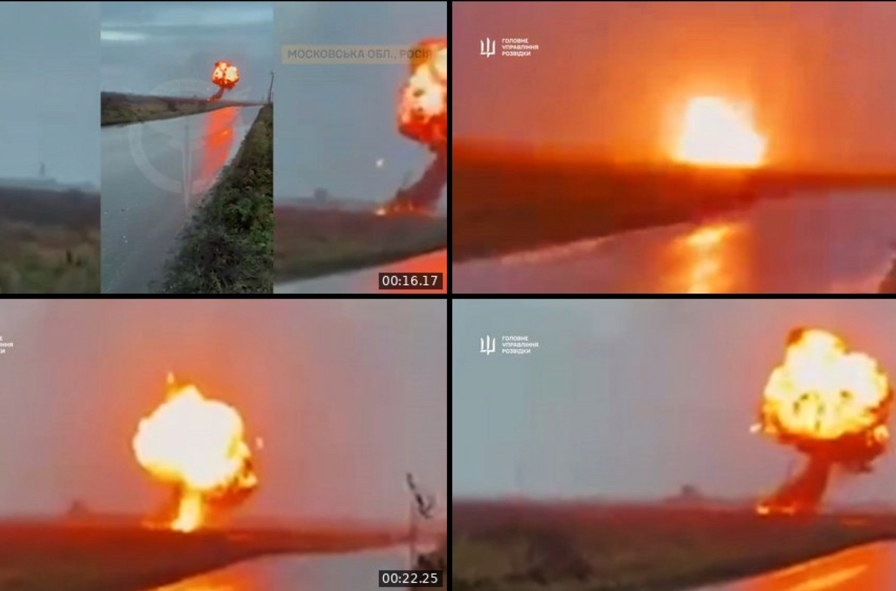 Главное управление разведки Украины сообщило, что в результате специальной операции на территории Раменского района Московской области были повреждены три линии нефтепродуктопровода «Кольцевой». По данным ГУР, по этому трубопроводу перекачивали бензин, дизельное топливо и авиационный керосин, предназначенные для нужд российской армии.
