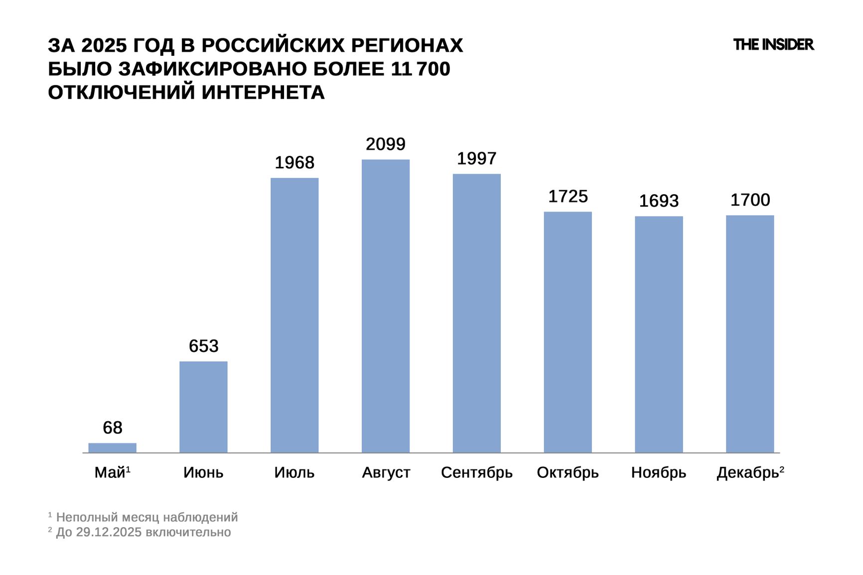 Всего с мая по декабрь в российских городах было зафиксировано 11 903 отключения интернета.