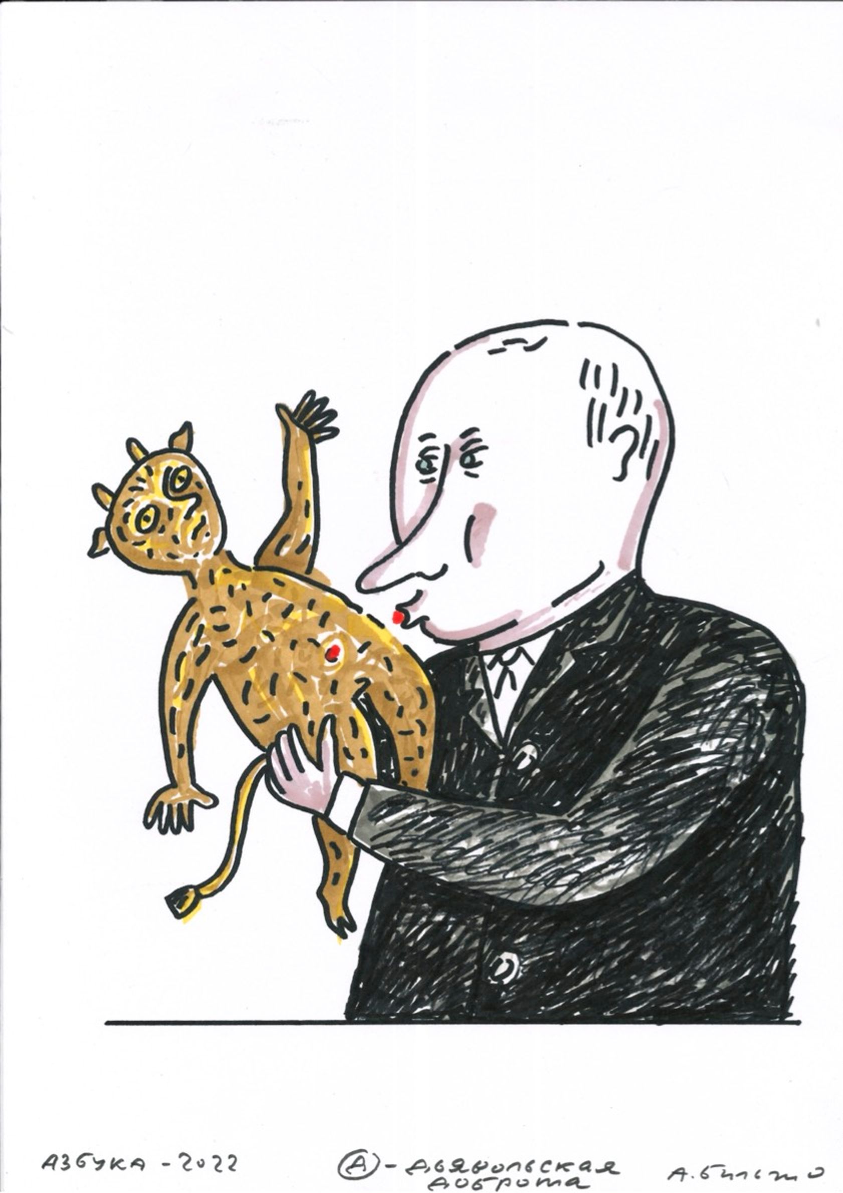 На выставке в рамках форума «Словоново» в Черногории художник Андрей Бильжо представил новый цикл «Азбука — 2022» — антивоенный и антитиранический эпос, по буквам передающий пафос происходящего. The Insider публикует первую из трех частей этого цикла.