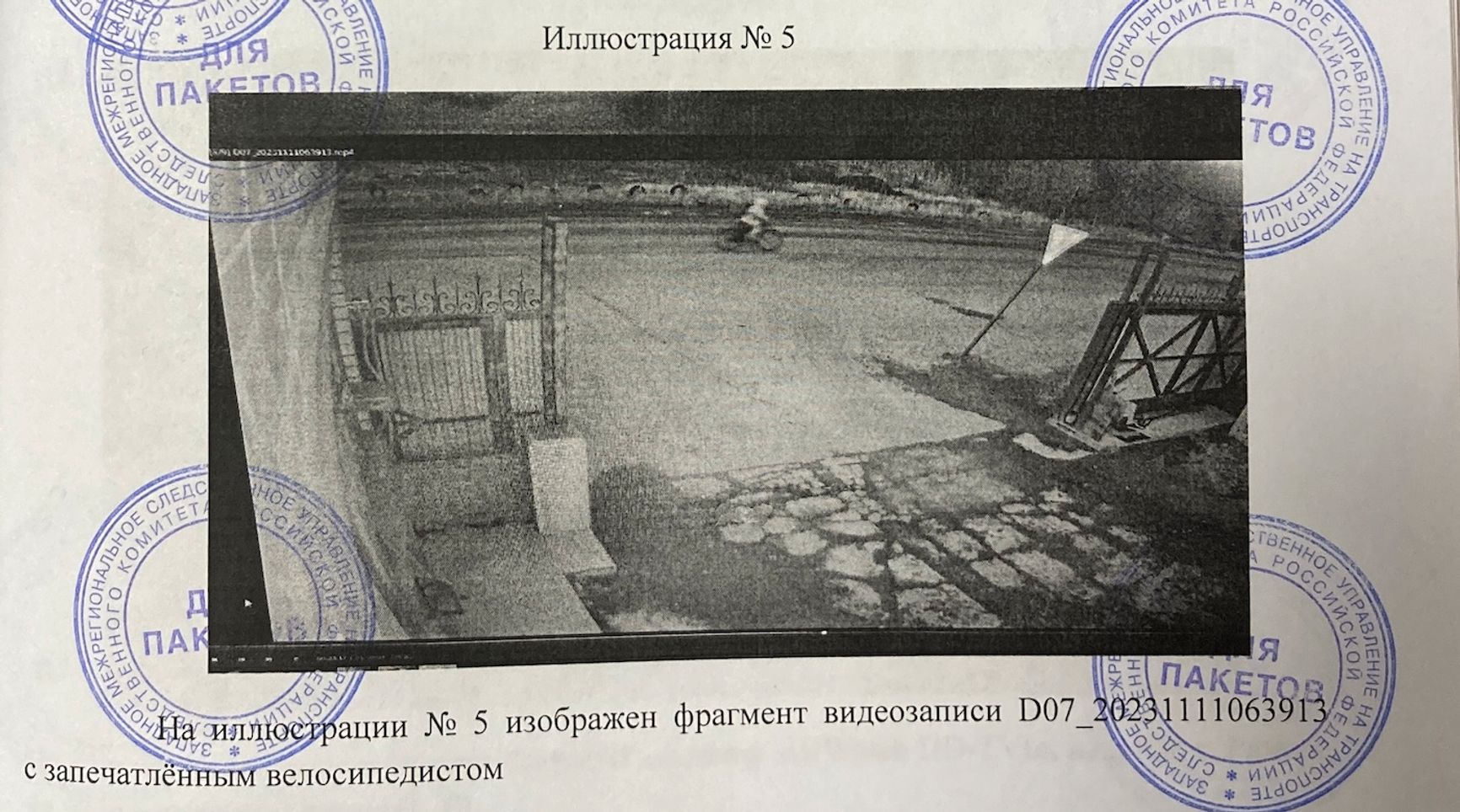 В этот же день силовики изъяли видеозаписи с предприятий «Астпласт», «РЭМЗ» и «Элкон». На камерах «Астпласт» в 06:33 утра в кадре появился силуэт велосипедиста, который ехал в ту же сторону. Лицо скрыто, в кадре он остается всего восемь секунд.