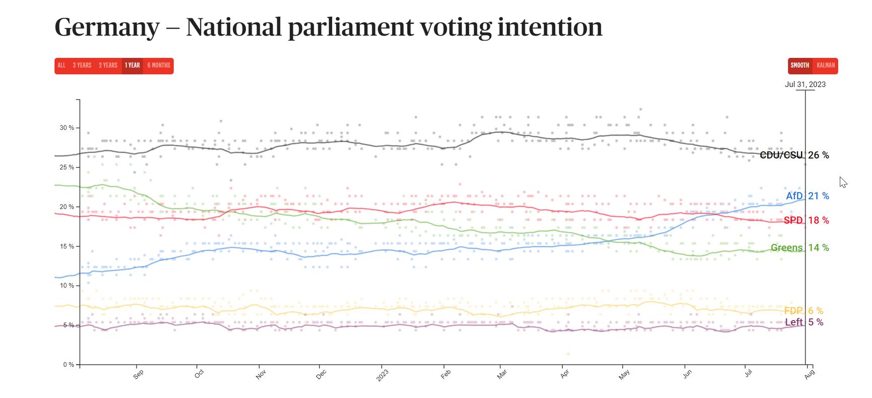 Лидеры АдГ не скрывают своих ультраправых взглядов: например, сопредседатель партии Александер Гауланд заявлял, что немцы могут гордиться подвигами немецких солдат во Второй мировой войне. Прославление подвигов Вермахта, однако, не помешало Кремлю пригласить в этом году Гауланда на торжественную встречу 9 мая (очевидно, чтобы обменяться опытом по захвату Украины).